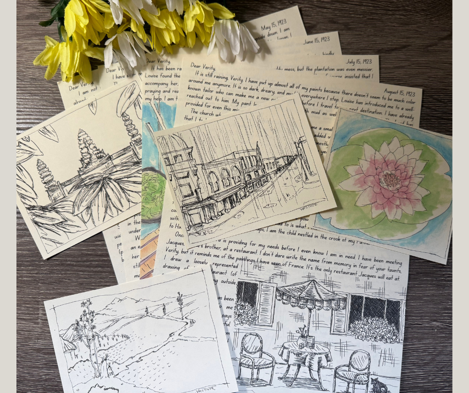 In this collection, you will receive May, June, July, and August 1923 Letters from French Indochina. Enjoy the colorful paintings and drawings in the letter as well as 4 drawings.